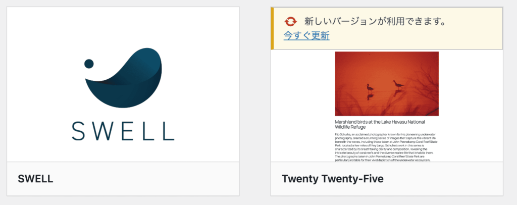 さらにダッシュボードのテーマの更新一覧にもSWELLが出てこないのです。