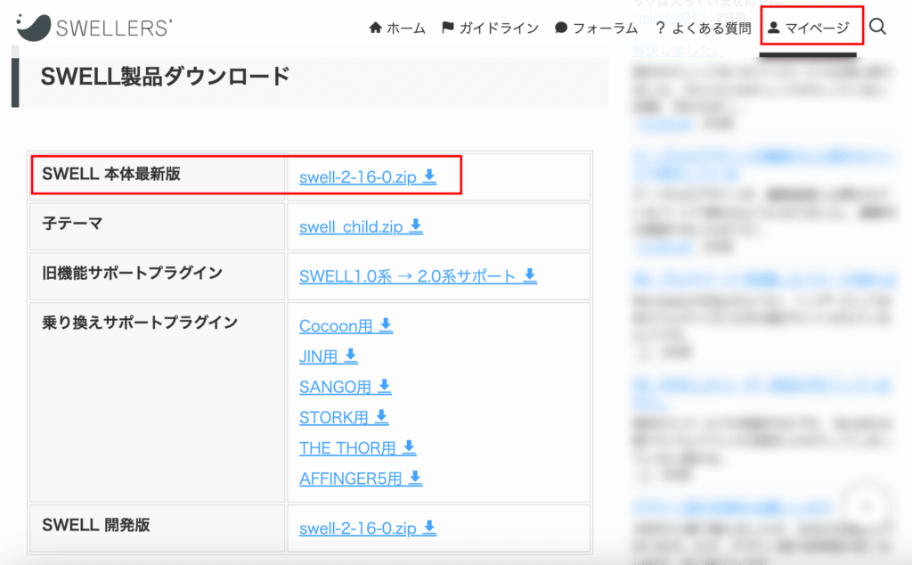 SWELLを購入すると、SWELLERSという購入者専用のページにログインすることができます。